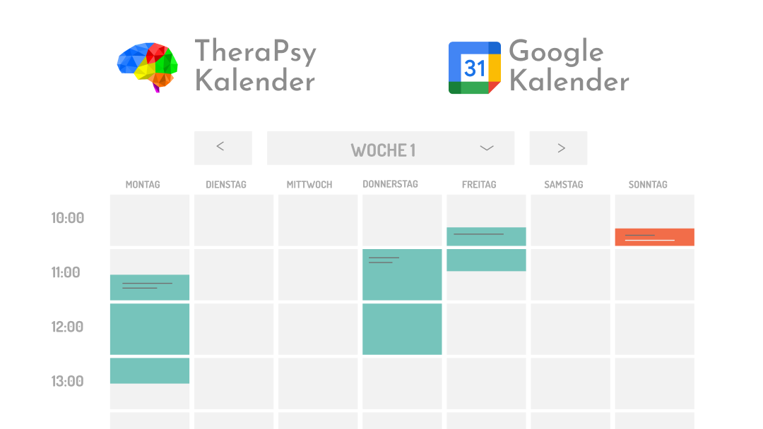 Kalendersynchronisation: Termine werden automatisch in TheraPsy oder Google-Kalender eingetragen.